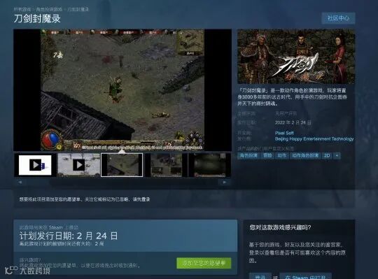 就在近日,由像素软件开发的国产ARPG游戏《刀剑封魔录》在Steam平台上线了页面,并确定将于2月24日发售,届时还将支持简繁中文和英文字幕。