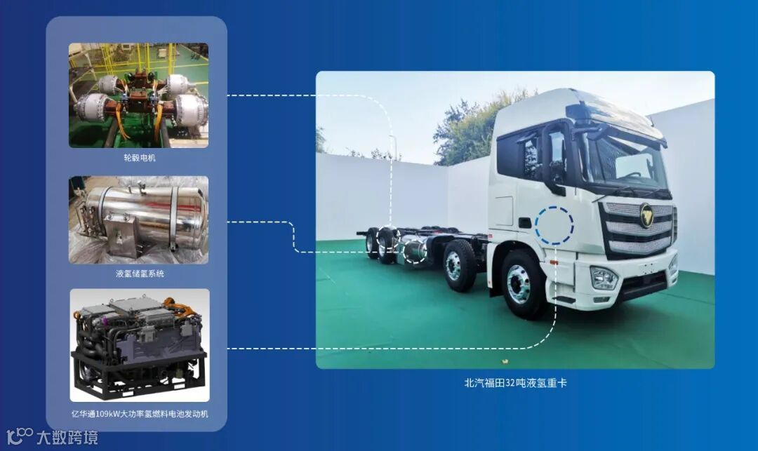 9月8日,在2020年中国国际服务贸易交易会北京市氢能产业政策和项目发布活动上,北汽福田32T液氢重卡暨全球首款液氢重卡正式发布,车辆搭载亿华通大功率氢燃料电池发动机系统,采用液氢系统及大功率轮毂电机,突破氢燃料电池商用车长里程、高功率和长寿命等关键核心技术,为长续驶重卡提出新的解决方案。