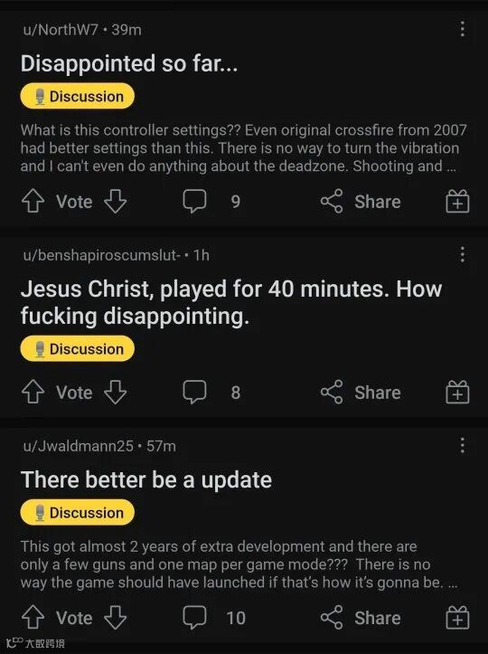 此外,主玩多人模式的免费玩家也没有感受到“主机大作”应有的游戏体验。地图过少、射击手感糟糕、自动瞄准失效等缺点,都大大降低了玩家们对《穿越火线X》的评价。IGN也给出了3分的评价(满分10分),他们的看法跟玩家出奇一致——