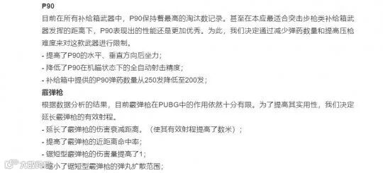 接下来要说的改动就是P90的削弱了。在之前的版本当中,P90确实是表现最为出色的主武器之一,甚至要比一些突击步枪还要强。其强度一直是玩家讨论的话题。因此在这一次的版本更新当中,P90的水平后坐力以及垂直后坐力都遭到了削弱。而且,机瞄状态下的全自动射击精度也被削弱了。空投中的弹药数量,也从250发下降到了200发。可以说,这一次P90是被大砍一刀,走下神坛了。