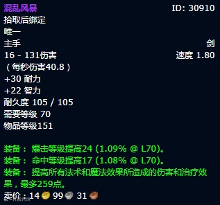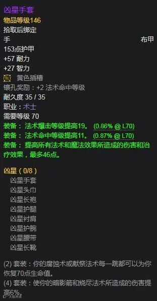 手部装备首选T6手套,爆击和命中都是术士急需的!