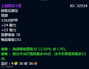 披风装备首选伊利达雷议会披风。大家都知道,术士是比较吃急速属性的,这也是很多术士玩家会选择带夸眼的原因。32点急速对于术士来说,收益巨大。
