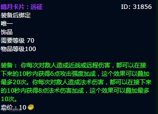 饰品首选暗月卡片:远征、古尔丹之颅。暗月卡片:远征就不说了,妖头前必备装备,古尔丹之颅的可控急速以及更强常驻属性碾压了夸眼,当然玩家也可以选择古尔丹之颅配夸眼。