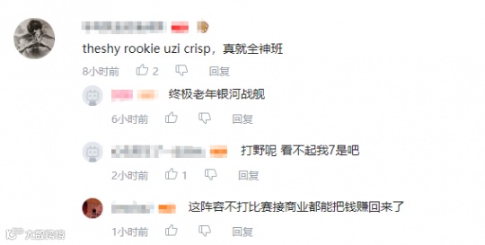 对此不少网友表示,如果能在有生之年看到The Shy、Rookie、Uzi、刘青松外加厂长一起打一回比赛,自己的青春也就圆满了。而一些网友则开起了玩笑:“众筹帮孙哥把ph买回来吧”,“把比赛上热搜的含金量,节目效果拉满了”,“买肉鸡和theshy不如买ph有节目效果”……