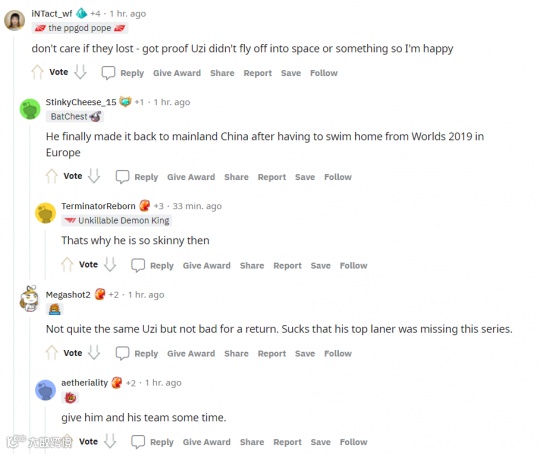 Uzi复出首秀让支持他的观众非常激动,许多国外观众也给出了自己的评价: