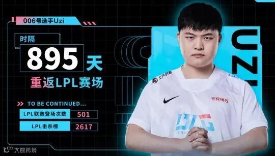 时隔895天,英雄联盟传奇AD选手Uzi于2月17日BLG对阵IG的第二场比赛中正式回归。作为一个两年多时间没有打过比赛的职业选手,复出的首场比赛就处于先输一场的境遇之下,这对任何人来说都是不小的压力。