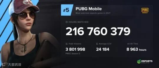2021年总观看时长最长的电竞游戏TOP5: