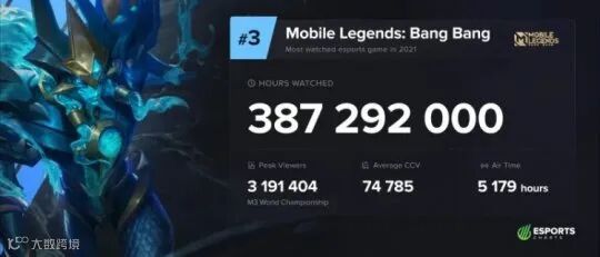 总观看时长3.87亿小时,观众峰值记录319万(该数据出现在无尽对决M3世界总决赛),赛事总直播时长5179小时