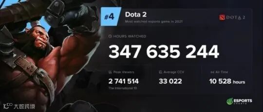 总观看时长3.48亿小时,观众峰值记录274万(该数据出现在TI10决赛),赛事总直播时长10528小时