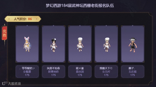 西栅老街在最近两届武神坛的比赛中表现极为出色,团队老板更是大力更新了一批净台召唤兽。其核心老板伦总、酸奶等等、熊总手里均有不少武神坛顶尖“战将”,团队门派深度、硬件深度至少也是全服前三水平,再加上一线指挥“封狼居胥”的坐镇,西栅老街本届比赛的实力也是极为强横的。