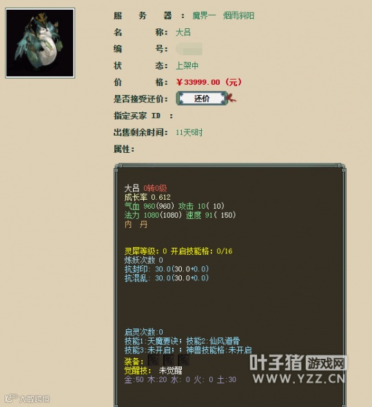 大吕,0级的卖3.4万