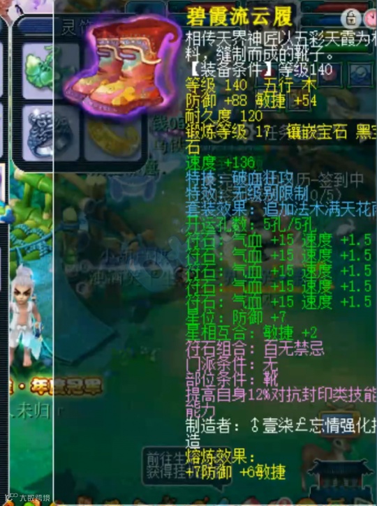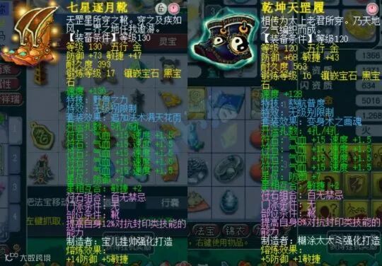 17锻130级无级别野兽之力鞋子和16锻120级无级别慈航普度鞋子,第一双鞋子看比武情况搭配,第二双鞋子在天罡地煞拉队友。