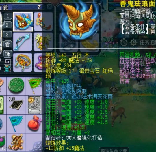 熔炼后95防御,372气血,17锻黑宝石
