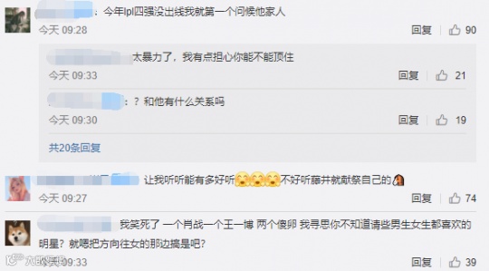 万一在最后总决赛的舞台上,两支韩国队伍成功会师了,那王一博上场岂不是太丢人且尴尬了吗?某些情绪激烈的网友甚至在评论区,直接吐槽表示:“今年LPL四强没出线,我就第一个问候他XX”,“让我听听能有多好听,不好听就献祭XXX的马”……