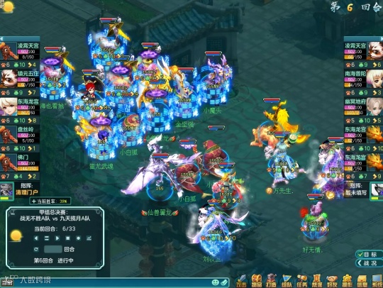 在第6回合,前面几个回合九天揽月A队处于清宠与点杀双双失利的绝对劣势,九天揽月A队凭借速度优势封印卡药苦苦运营,终于在第六回合迎来反转。