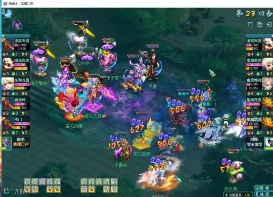 随后的22回合,九天揽月A队迫于站场和蓝量压力放弃进攻,出了一排盾宠,战无不胜A队则趁机补齐输出宠,在第23回合成功击杀对手佛门,佛门一死可以说是动了九天揽月A队的根本。