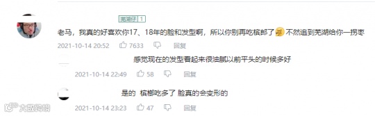 就连普通观众也已经注意到了大司马国字脸都出来的,但这并不是源于发福而是咀嚼肌变发达了。这条视频下面,许多粉丝都希望他能够真正把槟榔戒掉。