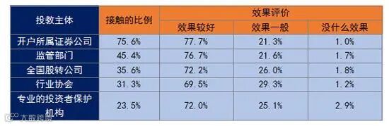 表 2:受调查新三板投资者接触相关投教主体的情况及对投教主体的评价