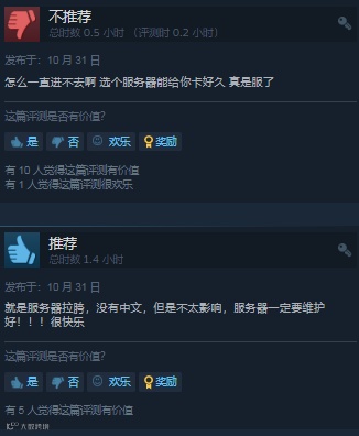 不过《螃蟹游戏》也不是全无缺点,作为一款在线游戏,服务器不稳定对玩家们的游戏体验会造成极大的影响。实际上大部分差评给出的理由,也都围绕着这一点;没有中文对于国内玩家来说同样不够友好。