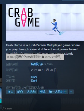 《Crab game》翻译为《螃蟹游戏》,这款画风酷似4399小游戏的作品,光从游戏名字和识别度奇高的运动衫大家就能得出它蹭的是谁的热度。