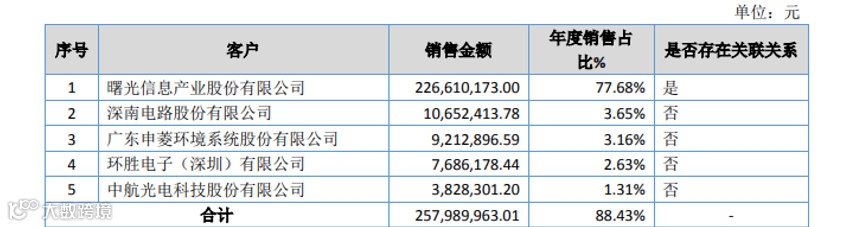 2019 年,公司前五大客户销售收入为 257,989,963.01 元,占当年营业收入的比重为 88.44%。其中第一大客户占比为 77.68%,从财务数据来看公司对主要客户的依赖程度较高,下游主要客户的经营波动也会对公司的业绩产生较为明显的影响。