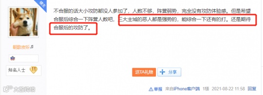 对于合服的决定,玩家纷纷表示支持:合服肯定会比现在有意思得多,不过也希望官方可以综合平衡一下阵营人数,毕竟三大主城恶人都是强势的,但不管怎样,还是十分期待合服后的攻防。