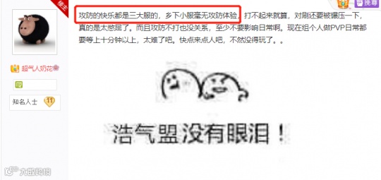 最近,有玩家向官方反馈了一个问题:攻防的快乐都是三大服的,乡下小服毫无体验!有的玩家表示:长安的攻防根本打不起来,浩气人太少了,满打满算也就恶人的一半。