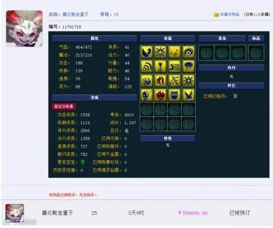 前段时间,1只16技能净台魔化童子震惊三界。涛哥花55万元买下,正想着运回宝阁,在藏宝阁摆了70万。令人没想到的是,有人截胡了这只宝宝。