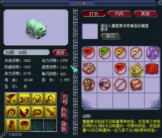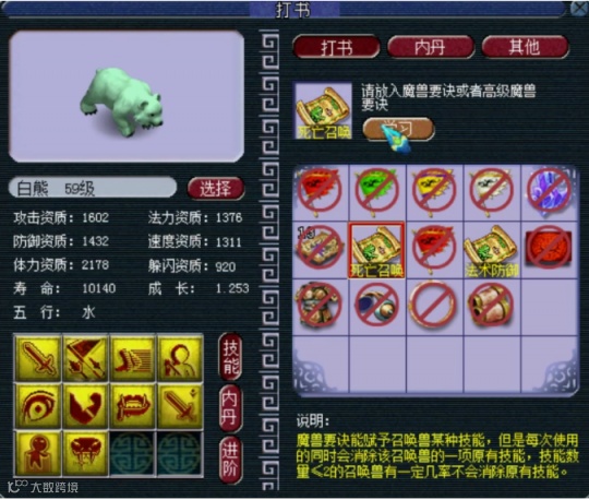 10技能的个性全红白熊“胚子”,攻资1582+20,成长1.253,资质非常不错。