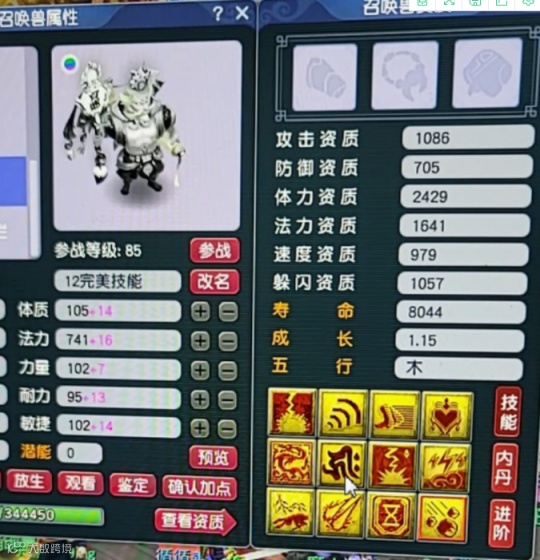 这宝宝技能很完美,核心技能少一个高级遗志,辅助技能高敏捷高盾气高神佑全都有,带高级遗志套直接起飞。