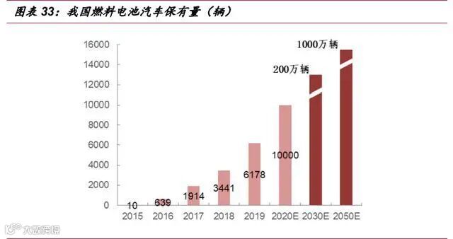 受补贴退坡的影响,2019 年中国新能源汽车整体产销出现大幅收缩,但燃料电 池汽车却呈现高速增长的局面,2019 年燃料电池汽车销量为 2737 辆,同比增加 79.2%。2020 上半年,我国燃料电池汽车销量为 403 辆,同比下降 63.4%。由于目 前燃料电池汽车在我国仍处于试点示范阶段,订单来自政府采购,且以商用为主,保 有量相比同为新能源的纯电动车,基数仍处于较低水平。按照燃料电池发展白皮书, 到 2030 年,我国燃料电池汽车保有量达到 200 万辆水平,到 2050 年,保有量水平 达到 1000 万辆水平。