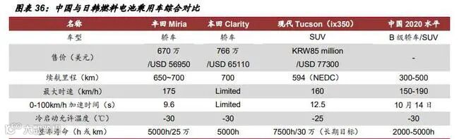 主要由 于两方面的原因,一方面,我国燃料电池堆的技术水平还达不到乘用车的水准,经济 性方面仍无法与目前的燃油车、纯电车相媲美。另一方面,燃料电池车的推广离不开 加氢站的建设。加氢站配套的不足直接导致下游需求的弱化,车企没有动力向乘用车 领域进行研发和推广。