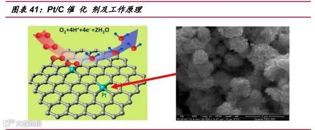 催 化 剂是膜电极的关键材料之一,其作用是降低反应的活化能,促进氢、氧在 电极上的氧化还原过程、提高反应速率。目前,燃料电池中常用的商用催 化剂是 Pt/C 催 化剂,由 Pt 的纳米颗粒分散到碳粉(如 XC-72)载体上的担载型催 化剂。