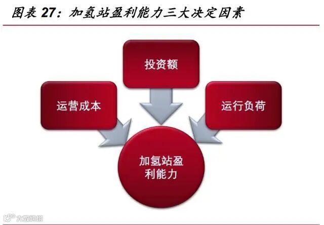 我们对氢气与汽柴油 做简单经济性对比,汽车行驶每 100 公里,需要消耗 1kg 氢气或 6-7 升汽油,每升 汽油价格为 6.5~7 元左右(对应布伦特油价 55 美元/桶),因此每百公里的汽油成本 为 39-49 元,即只要氢气的成本降至 40 元/kg 以下,氢气能源较之传统汽油就有成 本优势。但现阶段国内氢站氢气零售价格普遍为 60-70 元/kg,明显高于传统汽柴油 的交货成本,如果氢燃料电池公交车运行成本要达到和柴油车同等水平,加氢站氢气售价需要大幅降低。