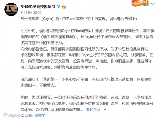 提到中单龙龟这个话题,很多关注LPL选手的观众,不自觉就会想到RNG的中单Cryin。此前他曾因为多次在排位中使用龙龟挂机,而被认为消极参与对局。在输给LNG掉入冒泡赛之后,状态极差的Cryin还因此受到了战队的惩罚。