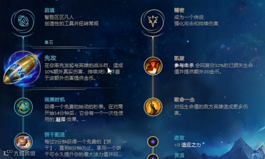 除此之外,S9赛季的行窃预兆这个天赋,普遍被看成是能够加快发育速度的前期天赋,脱离对线期以后效果就会锐减。可先攻因为会跟额外伤害值挂钩,越到后期收益会越高。对于爆发型英雄来说,更是如虎添翼。