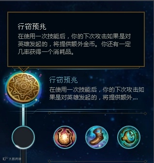 对游戏有更深层次理解的职业选手们,在S9赛季则把行窃预兆这个天赋发挥到了极致。当时这个天赋的效果是:在使用一次技能后,你的下两次攻击如果是对英雄发起的,将提供5金币。你还有一定几率获得一个消耗品。