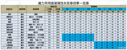 目前来说,主流魔力套依旧是表中【灵鹤-蜃气妖】这一类别。