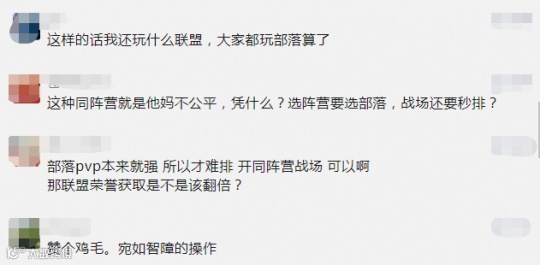 这个消息一出,玩家们的大多数也持反对意见,甚至还有很多玩家直接开喷。对于联盟而言,本身联盟玩家可以享受战场秒排,而这个秒排待遇是拿野外PVPPP的悲惨待遇换来的,现在部落不用付出野外被围殴的代价,也能战场秒排的话,那谁还转联盟?