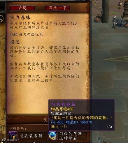 除了雇佣兵模式外,8.1版本上线了“实力悬殊”任务,该任务也一直保留至今。这个任务鼓励人口较少的联盟方参与PVP活动,能够获得更多的PVP奖励,而且从8.1以来,“实力悬殊”任务的PVP奖励就一直非常丰厚,十分诱人,以至于工作室都有专门的肉鸡号提供给老板来做“实力悬殊”任务。