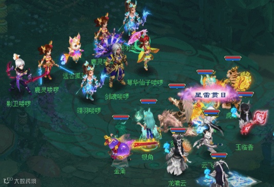 4、星河箭雨:使用水系法术攻击对方4个目标,30%概率优先攻击气血较少的目标,且优先攻击血量比例较少的单位。