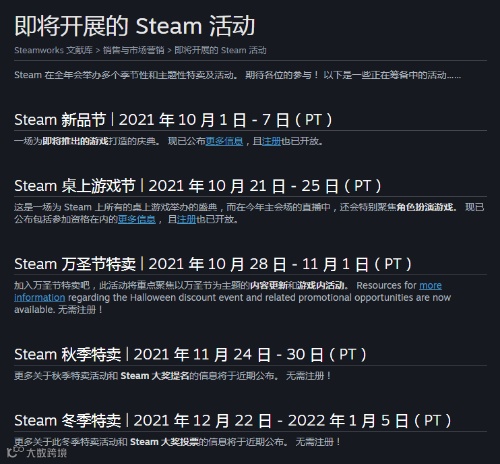 今天早些时候V社在Steamworks上确认了Steam秋季特卖和冬季特卖的活动时间: