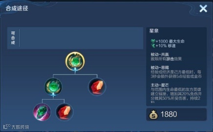 等恩赐效果叠满20层也就是游戏进行到10分钟时,二级辅助装也会变成大辅的被动效果,以便辅助位置尽快积累经济。而新增的被动-恩赐所提供的每秒加金币和经验的效果,却会在整场比赛中生效。以便打到后期时,辅助英雄也能有更好的经济状况。