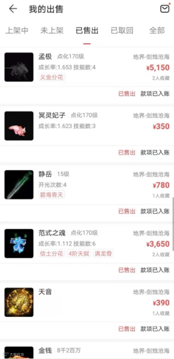 晒出自己2个号去年的出货记录,还有一个号找不到了,也有孟级,秒女,浪淘沙,范式,颜如玉...我想问,谁有后悔药给我一颗,现在看到这都是满满的钞票在乱飘啊!