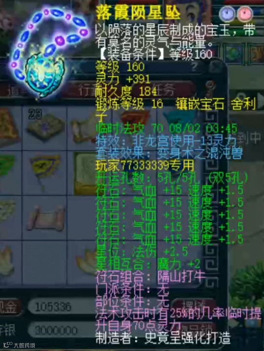 配饰爆了3点速度、20点防御、18点气血