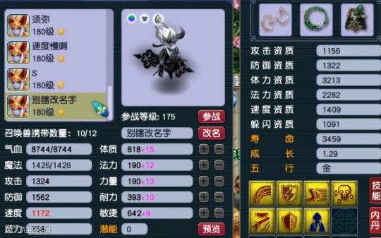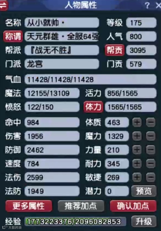 气血11428,防御2462,速度784,法伤2599。