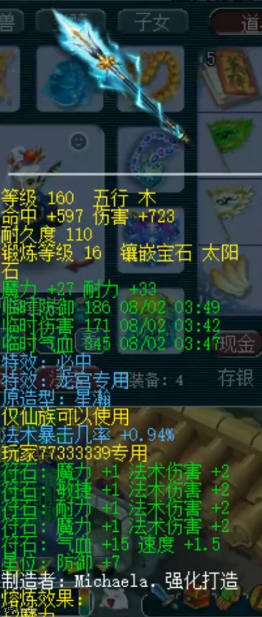 Hello大家晚上好鸭,今天猪妹给大家带来的是山东四区-沂水雪山-天元群雄64强龙宫的装备展示,属性十分炸裂,拥有391灵专用神链,更有翻页善恶童子!下面一起来看围观老板吧。