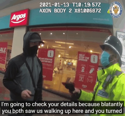 要知道当时街道上基本没有行人,基本都处于封闭状态。两个男子大摇大摆招摇过市本就显眼,更别说这两人看到执勤的警察却马上选择了绕道走,这反倒显得更加可疑。