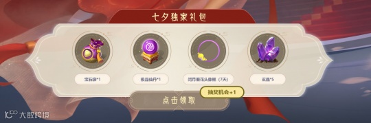 领取七夕独家礼包,提供礼包截图给客服
