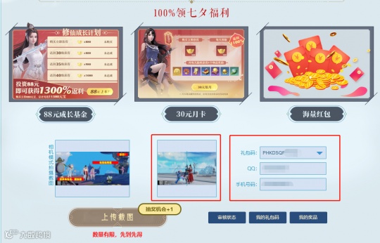 第三步:进入专题活动页面,领取七夕礼包,上传截图,领取奖励!
